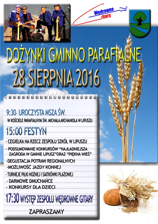 | There are no translations available. Zapraszamy na tegoroczne Dożynki, które odbędą się 28 sierpnia 2016 roku.
