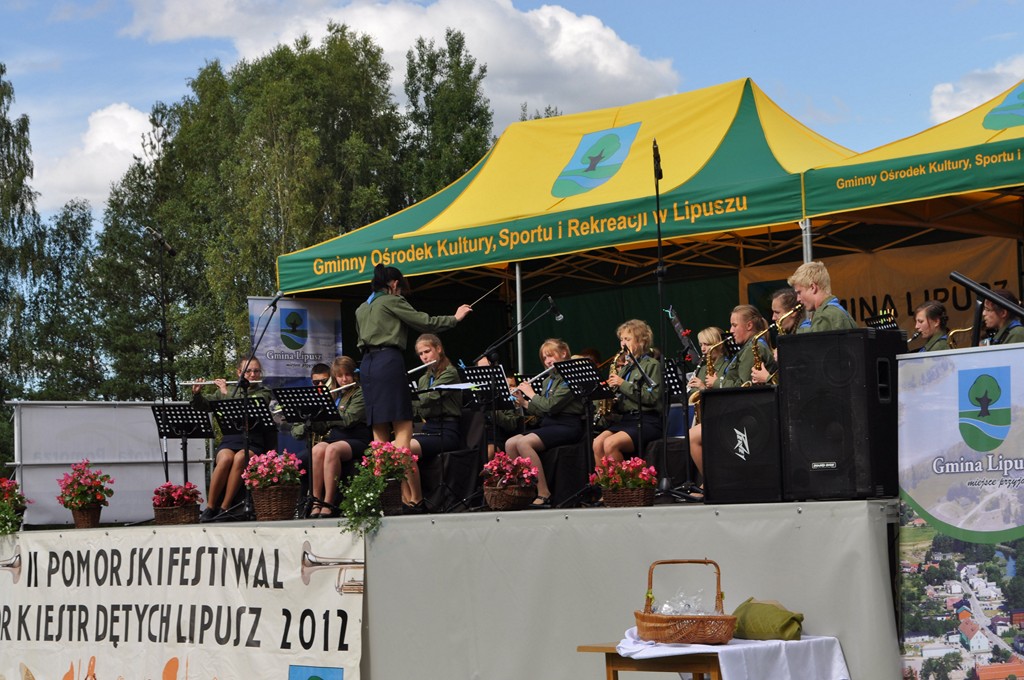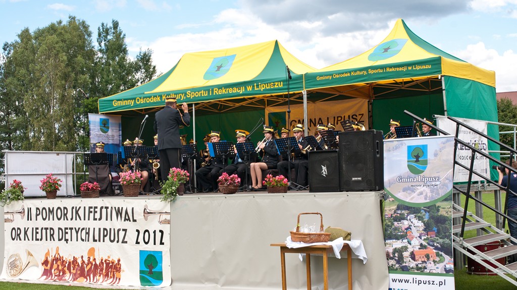 | W Lipuszu odbył się II Pomorski Festiwal Orkiestr Dętych Lipusz 2012. Tłumnie zebrana publiczność 22 lipca na stadionie sportowym w Lipuszu przez prawie trzy godziny mogła wysłuchać sześciu orkiestr, a każda z nich miała do 20 minut na zaprezentowanie swojego repertuaru. Świetnie przygotowane orkiestry dały koncert na bardzo wysokim poziomie. Festiwal ma formę prezentacji dorobku i umiejętności amatorskich orkiestr z województwa pomorskiego, a także jest okazją do doskonalenia warsztatu muzycznego. Impreza odbyła się w ramach „Dni Lipusza”, a uroczystego otwarcia festiwalu dokonali Wójt Gminy Lipusz – Pan Mirosław Ebertowski oraz Dyrektor GOKSiR Lipusz – Pani Rita Kozikowska. Wśród zaproszonych gości był również Ks. Prałat Jan Ostrowski - Proboszcz Parafii św. Michała Archanioła w Lipuszu